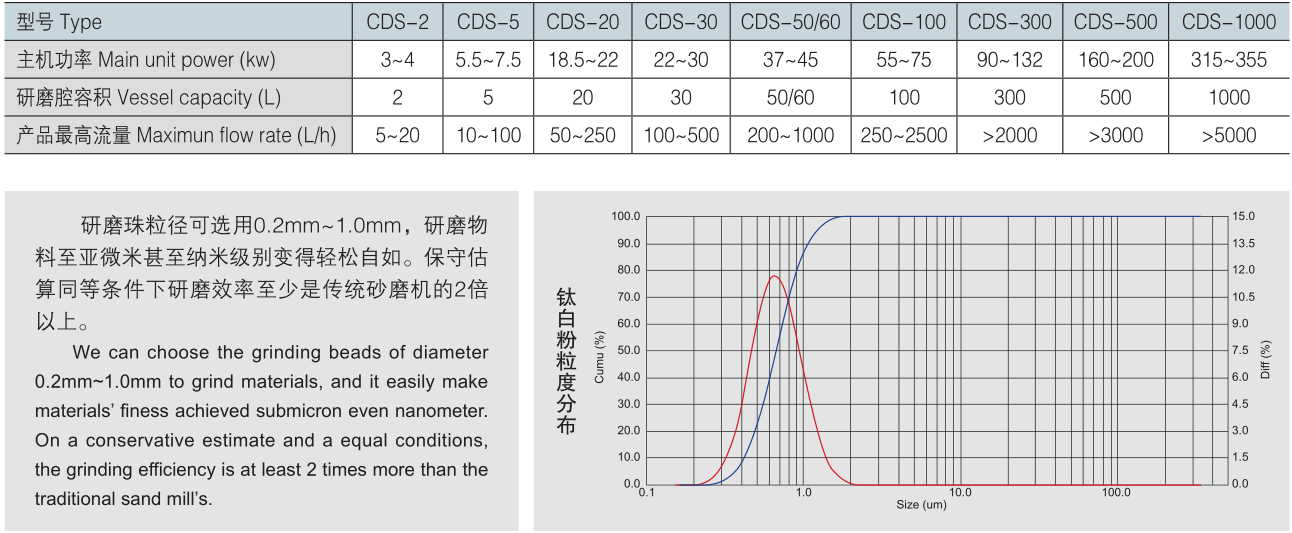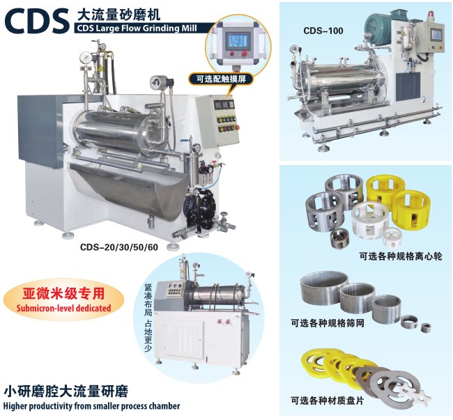 CDP系列納米砂磨機采納歐洲先進設計標準,流量大,控溫能力好,能量轉(zhuǎn)化率高,達成納米級研磨時粒度分布范圍窄。