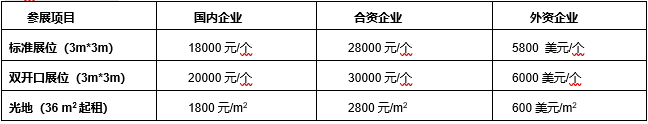 標準展位: (3M×3M)展位(包括三面圍板、楣板、一桌二椅、220V電源插座、地毯、清潔費等)。