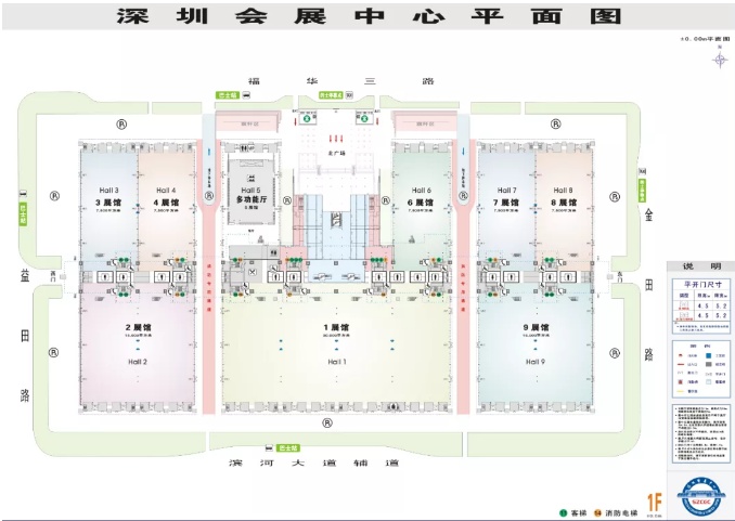 從地下停車場乘坐7——14號電梯可分別抵達會展中心各層。
