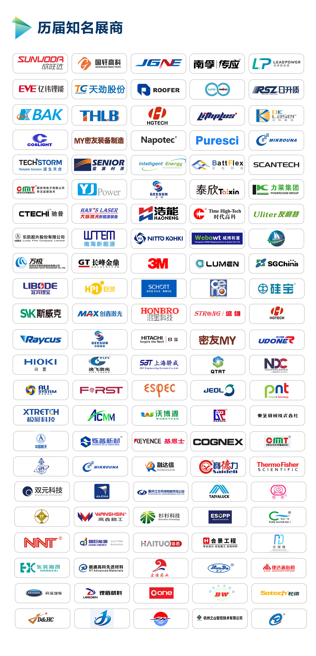 電芯、正極、負極、隔膜、鋁塑膜、鋼殼、電解液、鋰離子電池、鎳氫電池、固態電池、超級電容器、鈉硫電池、鋰一次電池、鋅錳電池、堿錳電池、鋅鎳電池、磷酸鐵鋰電池、三元電池、刀片電池、燃料電池、太陽能電池、薄膜電池、儲能電池、3C電池、方形電池、圓柱電池、軟包電池、密封膠、錳酸鋰、鎳鈷酸鋰、磷酸鐵鋰、錳粉、電解二氧化錳、石墨粉、儲氫合金、攪拌機、涂布機、碾壓機、分切機、烘烤機、卷繞機、點焊機、注液機、檢測儀器、激光焊蓋帽機、干燥機、充放電測試儀器、噴碼機、疊片機、電芯入殼機、化成機、封裝機、電芯配對機、折邊機、點膠機、分容機、手套箱、鋁塑膜成型機、極耳焊接機、分條機、模切機、入殼機、滾槽機、除濕設備、倉儲、搬運機器人、環保設備、凈化設備、干燥室、PACK設備、電芯裝備、其它設備配件。