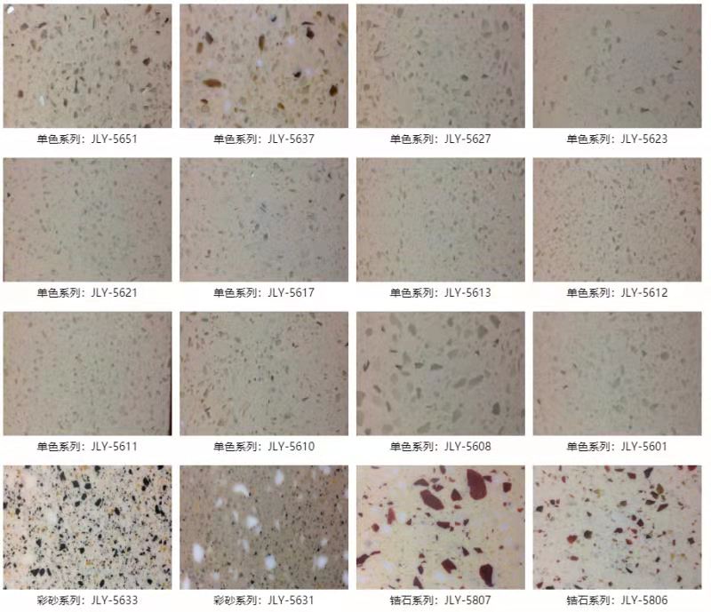 山東錦麗雅石英石制造有限公司專業生產新一代納米防污、無幅射 ,以天然石英砂、石英粉為基礎材料的綠色環保石材。產品主要應用在石英石臺面、石英石衛浴臺面、石英石窗臺板、石英石廚房臺面板、石英吧臺板、石英石梯級板、石英石地面、石英石墻面等天然石材可以應用的地方。產品主要分為單色系列、雙色系列、彩砂系列、鋯石系列等,并可以通過自由切割加工,靈活適應多類型臺面尺寸需要。