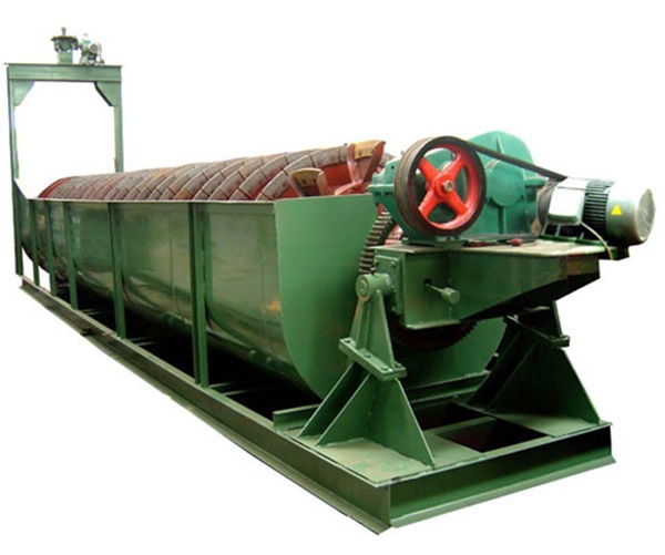 螺旋分級機(jī)是選礦的設(shè)備之一,螺旋分級機(jī)借助固體顆粒的比重不同,因而在液體中沉淀的速度不同的原理,進(jìn)行機(jī)械分級的一種設(shè)備。能把磨機(jī)內(nèi)磨出的料粉級于過濾,然后把粗料利用螺旋片旋片旋入磨機(jī)進(jìn)料口,把過濾出的細(xì)料從溢流管子排出。螺旋分級機(jī)簡稱分級機(jī)。 分級機(jī)主要有高堰式單螺旋和雙螺旋、沉沒式單螺旋和雙螺旋四種分級機(jī)。分級機(jī)主要由傳動(dòng)裝置、螺旋體、槽體、升降機(jī)構(gòu)、下部支座(軸瓦)和排礦閥組成。螺旋分級機(jī)廣泛適用于選礦廠中與球磨機(jī)配成閉路循環(huán)程分程分流礦沙,或用在重力選礦廠中來分級礦砂和細(xì)泥,及金屬選礦流程中對礦漿進(jìn)行粒度分級,及洗礦作業(yè)中的脫泥、脫水等作業(yè)。