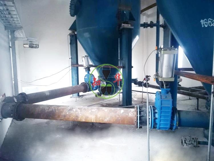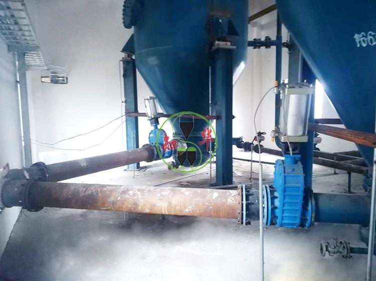 湖州興浦南方水泥有限公司擁有年產(chǎn)360萬(wàn)t/年水泥粉磨生產(chǎn)線,同時(shí)擁有自己的內(nèi)河碼頭,通過(guò)散裝船運(yùn)來(lái)的礦粉通過(guò)氣力輸送泵、管道輸送至水泥廠內(nèi)的礦粉庫(kù),通過(guò)知華設(shè)計(jì),整個(gè)輸送過(guò)程中實(shí)現(xiàn)了礦粉計(jì)量功能,計(jì)量精度3‰~5‰。該項(xiàng)目輸送水平距離210m,輸送高度45m,輸送量150t/h。