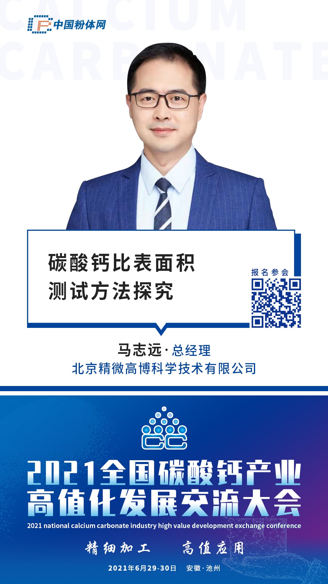 2021年6月29-30日,由中國粉體網主辦的“2021全國碳酸鈣產業高值化發展交流大會”將在安徽池州舉行,屆時北京精微高博科學技術有限公司總經理馬志遠先生將作題為《碳酸鈣比表面積測試方法探究》的報告,現場分享比表面積測試方法在碳酸鈣領域的應用案例和技巧。