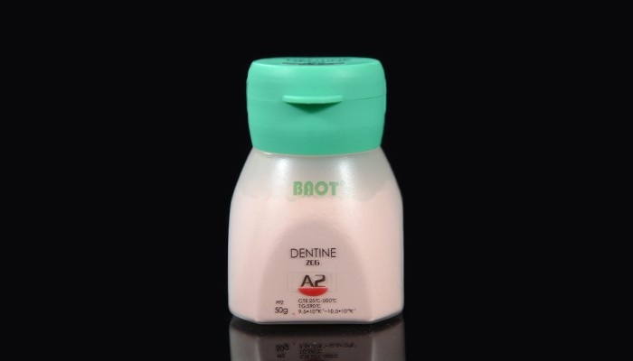 牙本色,形成牙本質(zhì)層的主要部分,奠定瓷牙主色調(diào)。根據(jù)客戶端生物牙顏色,配制有相對應(yīng)的顏色色號。用瓷粉水進行調(diào)制,堆砌在金屬牙冠的OP層上,按要求進行干燥和燒制。