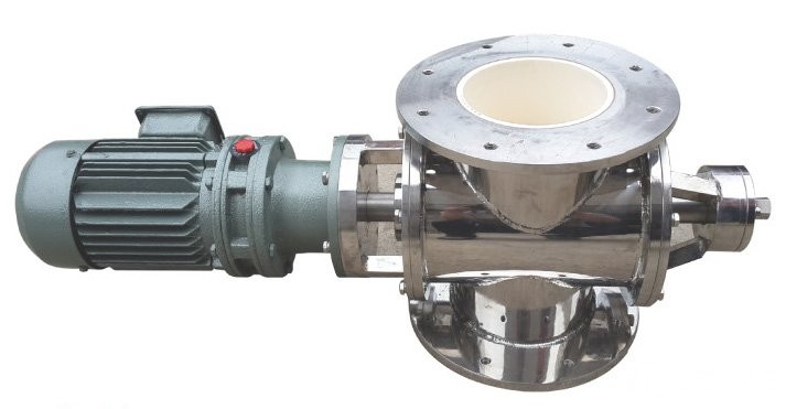 通過回轉閥芯上容料槽的作用將細顆粒或粉末狀物料從上方進料口輸送至下方出料口,送料推進速度可以通過調整回轉閥芯旋轉速度及容料槽大小改變。