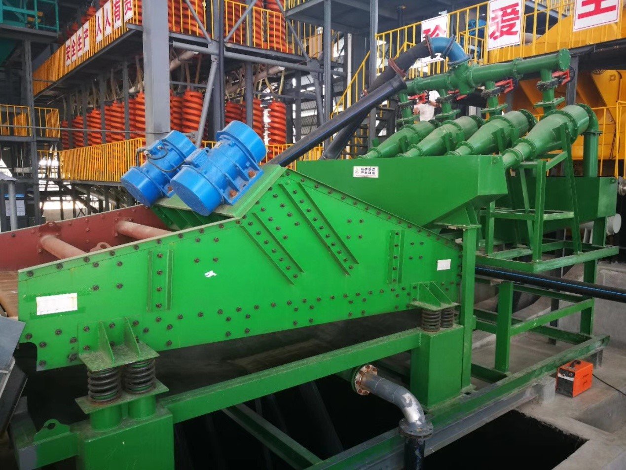 尾礦干排設(shè)備是近年來國內(nèi)逐漸興起的一項新的尾礦處置新工藝,是指經(jīng)選礦流程輸出的尾礦漿經(jīng)多級濃縮后,再經(jīng)脫水振動篩等高效脫水設(shè)備處理,形成含水少、易沉淀固化和利用場地堆存的礦渣,礦渣可以轉(zhuǎn)運至固定地點進行干式堆存。