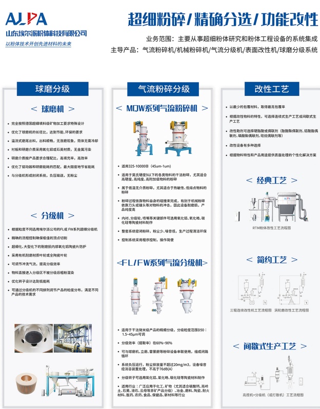 山東埃爾派粉體科技股份有限公司(ALPA)是世界知名的顆粒和粉末加工處理系統(tǒng)供應(yīng)商,致力于傳統(tǒng)粉體行業(yè)的變革。