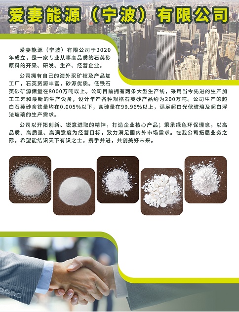 愛妻能源(寧波)有限公司于2020年成立,是一家專業從事高品質的石英砂原料的開采、研發、生產、經營企業。