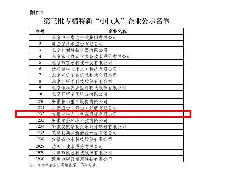 中國粉體網訊 在“色選機之都”安徽合肥,有一家專業從事智能分選設備研發、生產、銷售的高新技術企業,其依靠嚴格的質量管理體系,保障了公司產品和服務的質量,在全國乃至全世界打響了一個民族色選機品牌——“安美達”。這家企業就是今年作為色選機行業第一家獲得國家級專精特新“小巨人”殊榮的中科光電。