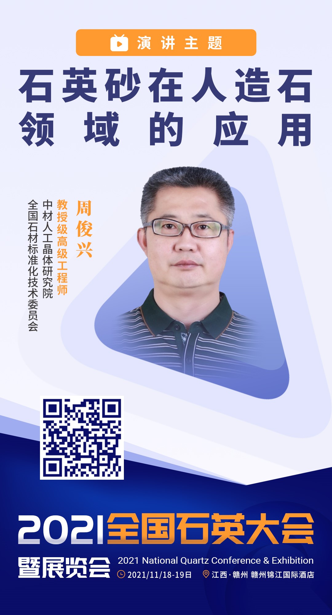 2021年11月18-19日,由中國粉體網主辦的“2021(第五屆)全國石英大會暨展覽會”將于江西贛州錦江國際酒店舉辦,屆時將邀請全國石材標準化技術委員會秘書長、教授級高級工程師周俊興先生作《石英砂在人造石領域的應用》報告,現場講述石英砂各類應用場景和先進技術,并為與會者解答疑難問題。