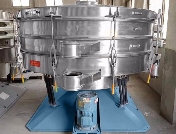 圓形搖擺篩是一款仿人工篩選的低頻旋振篩,其原理是:瞬時(shí)運(yùn)動(dòng)為沿徑向的位移和以此位移為軸的圓周運(yùn)動(dòng)的合成(螺旋運(yùn)動(dòng))。即可調(diào)節(jié)偏心距的激振器產(chǎn)生了非線性三維運(yùn)動(dòng),物料也產(chǎn)生同樣的近似手動(dòng)作業(yè)的運(yùn)動(dòng),從而達(dá)到篩分之目的,再配合篩分附件可得到更加理想的篩分效果;適合于圓球狀、圓柱狀、片狀、乃至不規(guī)則形狀易堵網(wǎng)且需要精密篩分的物料。