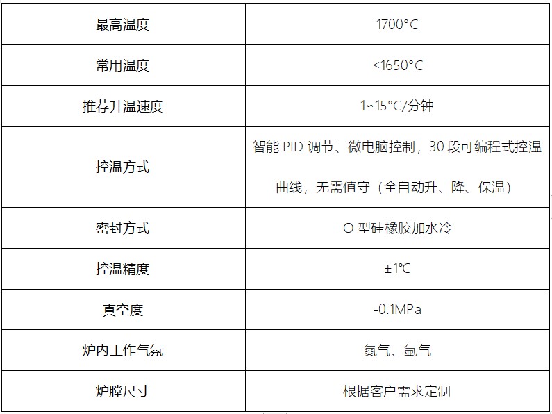 加熱元件采用1800型硅鉬棒,爐膛高純氧化鋁纖維材料,保溫性能好,耐用,拉伸強度高,無雜球,純度高,節能效果優于國內纖維材料;