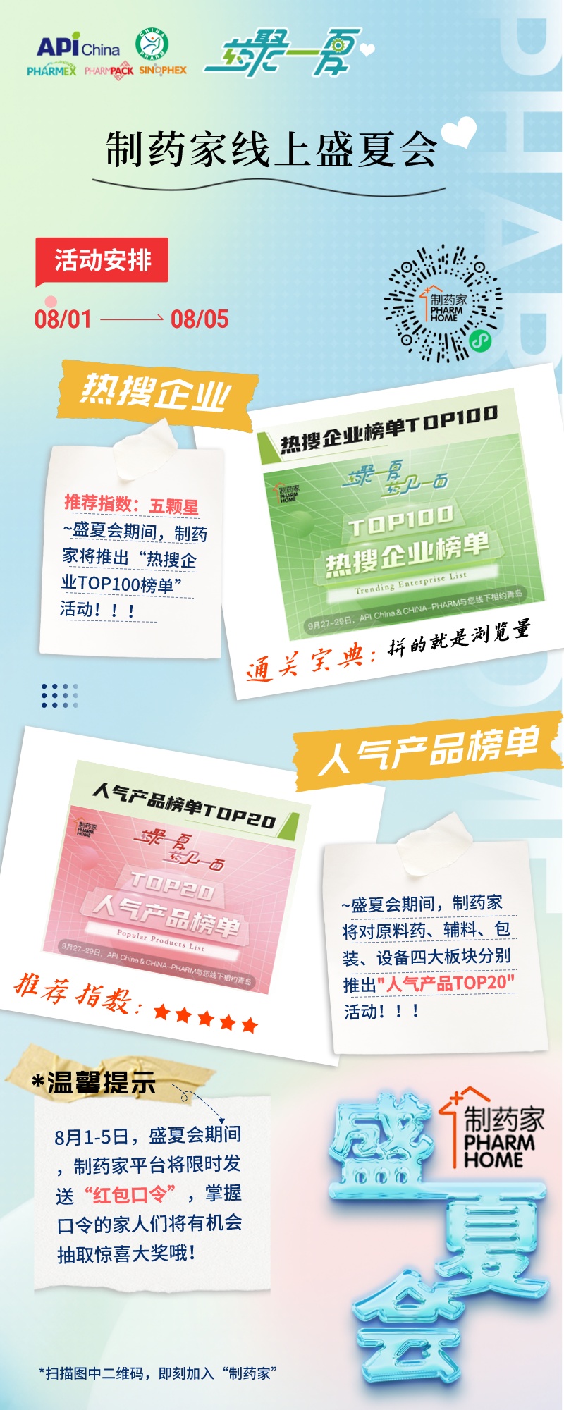 卡樂康獨家贊助《API制藥家·盛夏會》8月1-5日,線上相約,藥聚一夏!
