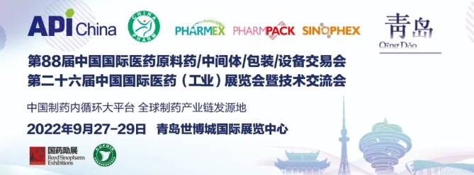 第88屆中國國際醫藥原料藥/中間體/包裝/設備交易會(API China)及第二十六屆中國國際醫藥(工業)展覽會暨技術交流會(CHINA-PHARM)將于2022年9月27-29日,在青島世博城國際展覽中心舉辦。展會同期將舉辦第二屆中國醫藥CXO大會及近30余場精彩會議,期待與您的再次相聚!