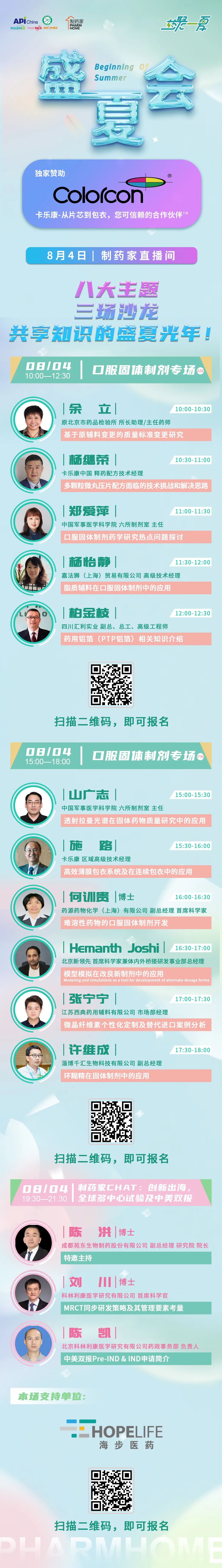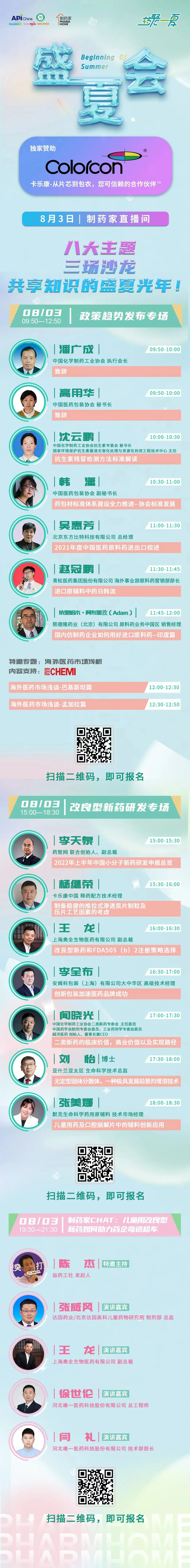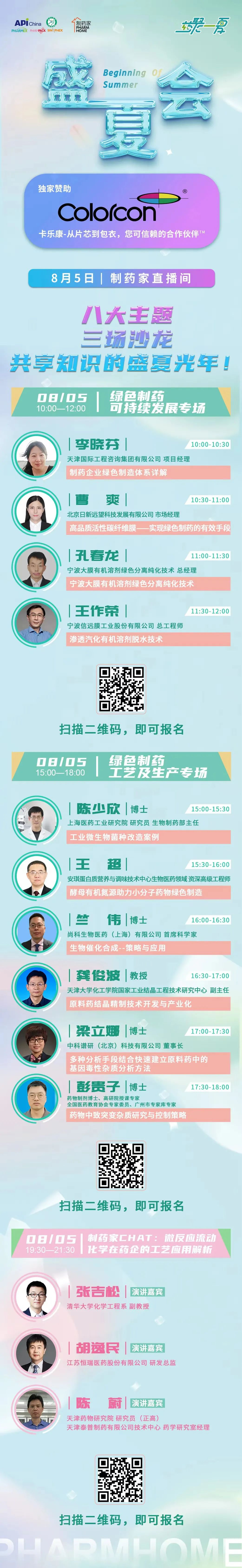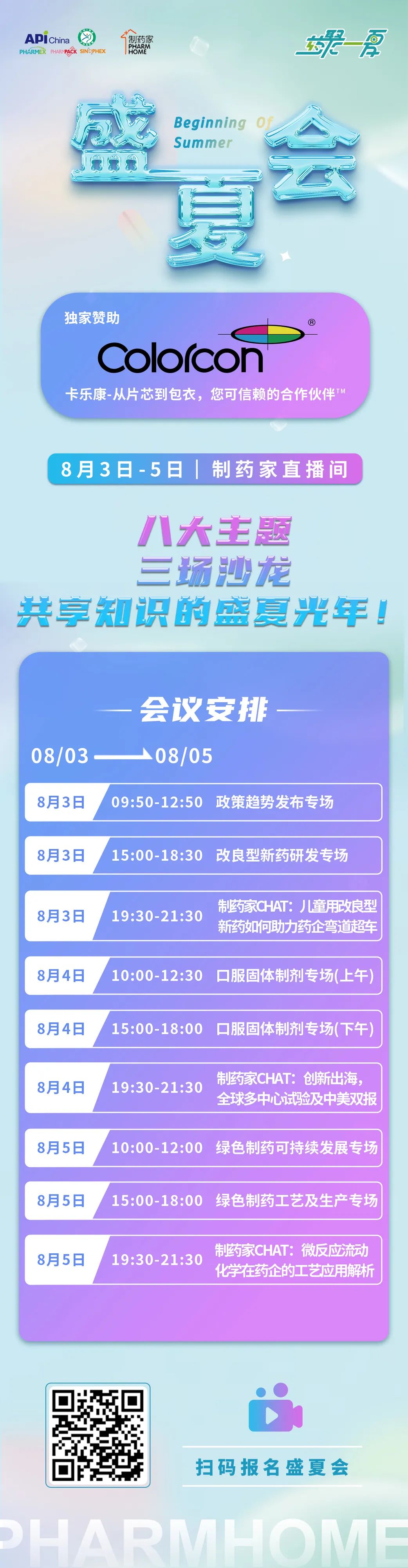 卡樂康獨家贊助《API制藥家盛夏會》·最全線上會議日程,火速收藏