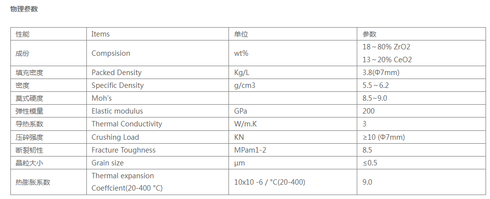 鈰穩定氧化鋯磨介的比重是目前氧化鋯磨介中最大的(可根據客戶需要生產5.5~6.20 g/cm3產品),從動力學而言 ( EC=1/2mv2)若研磨設備內使用鈰穩定氧化鋯磨介可得到較大的撞擊能量,因而提高生產效益;尤其對高粘度或對高固產品的研磨,更容易顯示其優點。對于中低粘度的產品,由于在固定體積下可選擇較小的鈰穩定氧化鋯磨介而增加研磨表面積,進而獲取更佳的研磨效果。