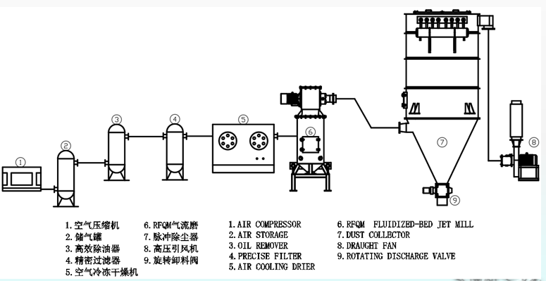 氣流磨生產(chǎn)工藝流程圖