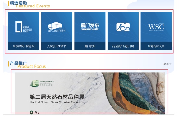 全體參展商登陸云上廈門石材展,實時發(fā)布產(chǎn)品、案例。專題推廣、逛展直播、論壇實況定期上新。線上、線下觀展賬號通用,還可在個人中心記錄興趣點,規(guī)劃路線,預(yù)約面聊。