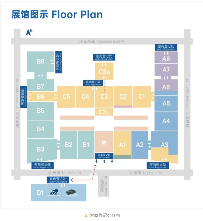 本屆展會共設置9個客商登記處,請您攜帶本人身份證和入場二維碼就近前往任意登記處,按指引入場。