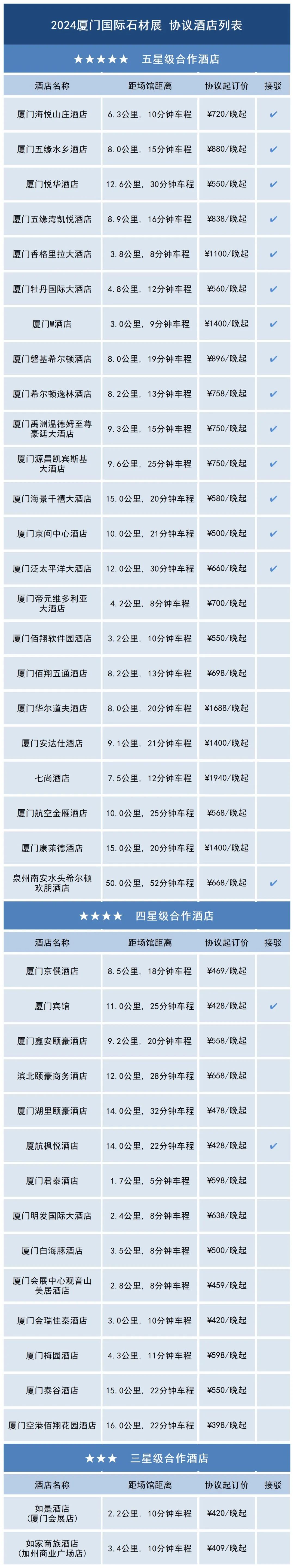 • 酒店信息請以廈門石材展官網實時更新為準;