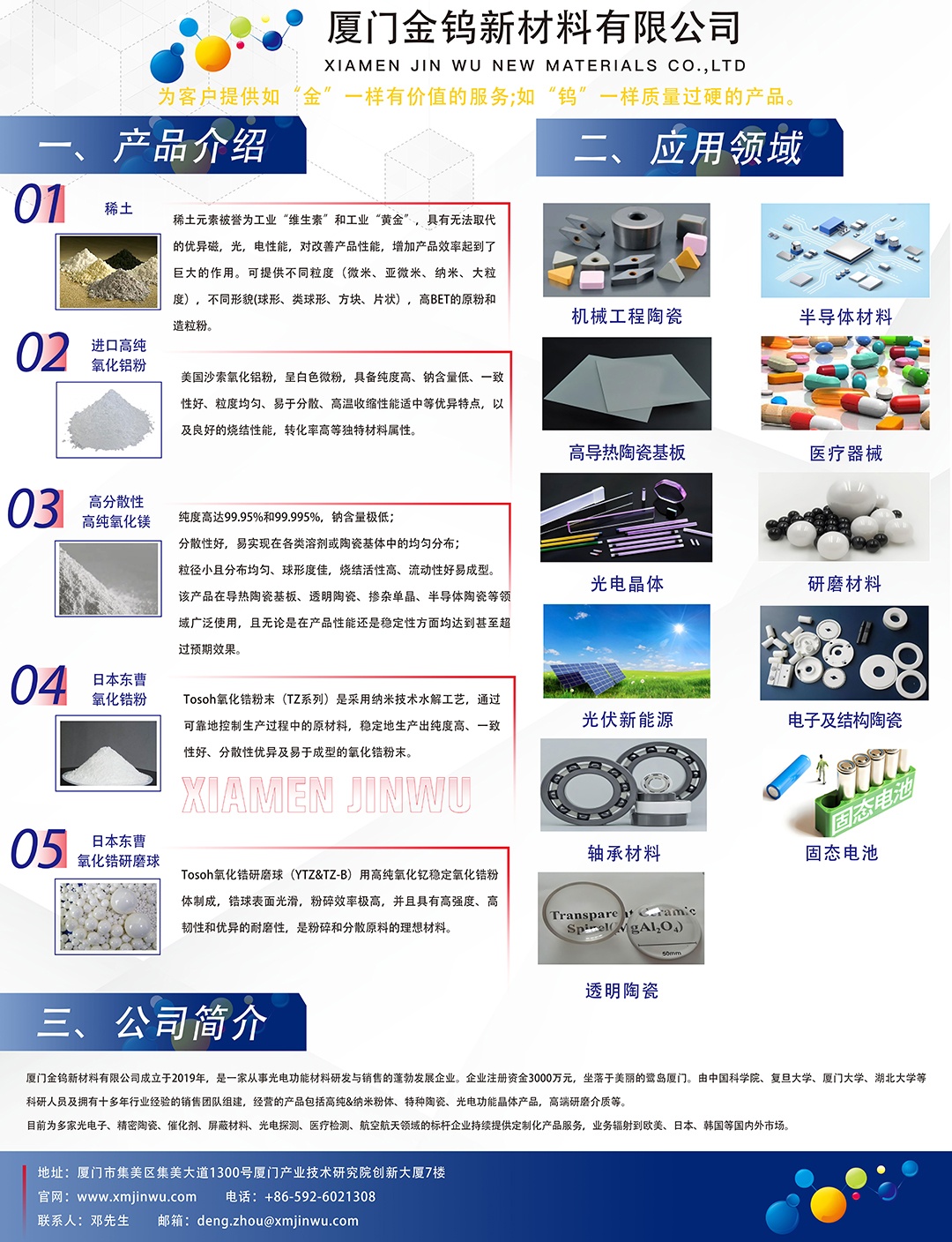 【展商推薦】廈門金鎢新材料有限公司邀您出席第三屆半導體行業用陶瓷材料技術研討會