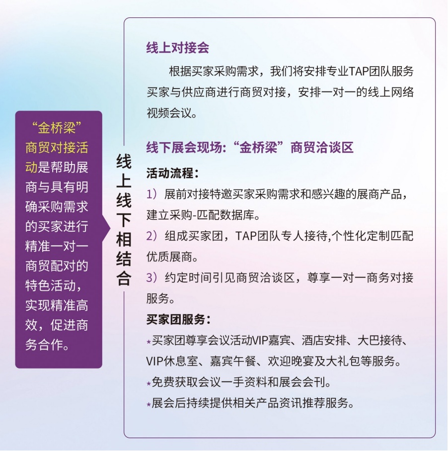 IPIE上海國際高端粉體裝備與科學儀器展覽會開設“金橋梁”商貿對接活動,幫助具有明確采購需求的買家進行精準一對一商貿配對的特色活動,實現精準高效,促進商務合作。