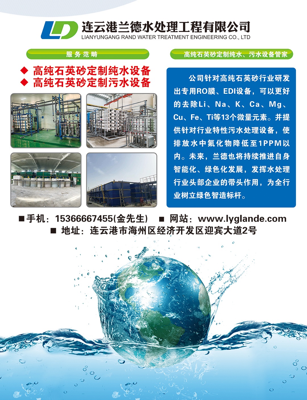 中國粉體網于將于2024年11月21-22號在江蘇省徐州市舉辦“ 2024(第八屆)全國石英大會暨展覽會 ”,連云港蘭德水處理工程有限公司邀您一同參加。