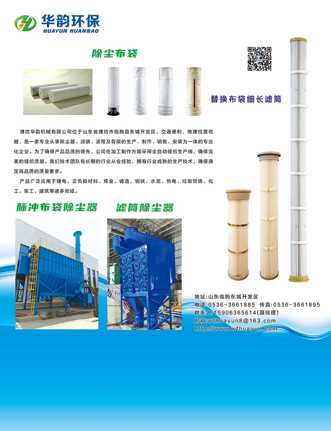 濰坊華韻機械有限公司是一家專業從事除塵布袋、除塵濾筒、除塵濾芯、除塵濾袋及布袋除塵器的生產、銷售、安裝為一體的專業化企業。為了確保產品的品質.公司在加工制作方面采用全自動縫紉生產線,確??p紉質量。我們技術團隊有長期的行業從業經驗,擁有行業成熟的生產技術,確保滿足高品質的質量要求。公司生產的多種濾材的工業除塵濾筒,靜電噴涂粉末回收濾芯,以及除塵設備和涂裝設備中的其他配件。