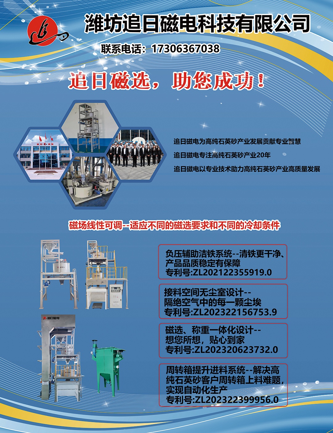 中國粉體網(wǎng)于將于2024年11月21-22號在江蘇省徐州市舉辦“ 2024(第八屆)全國石英大會(huì)暨展覽會(huì) ”,濰坊追日磁電科技有限公司邀您一同參加。