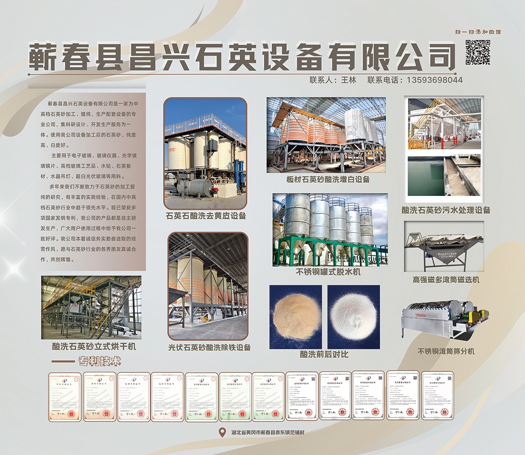 蘄春縣昌興石英設(shè)備有限公司是一家為中高檔石英砂加工、提純,生產(chǎn)配套設(shè)備的專(zhuān)業(yè)公司,集科研設(shè)計(jì)、開(kāi)發(fā)生產(chǎn)服務(wù)為一體。