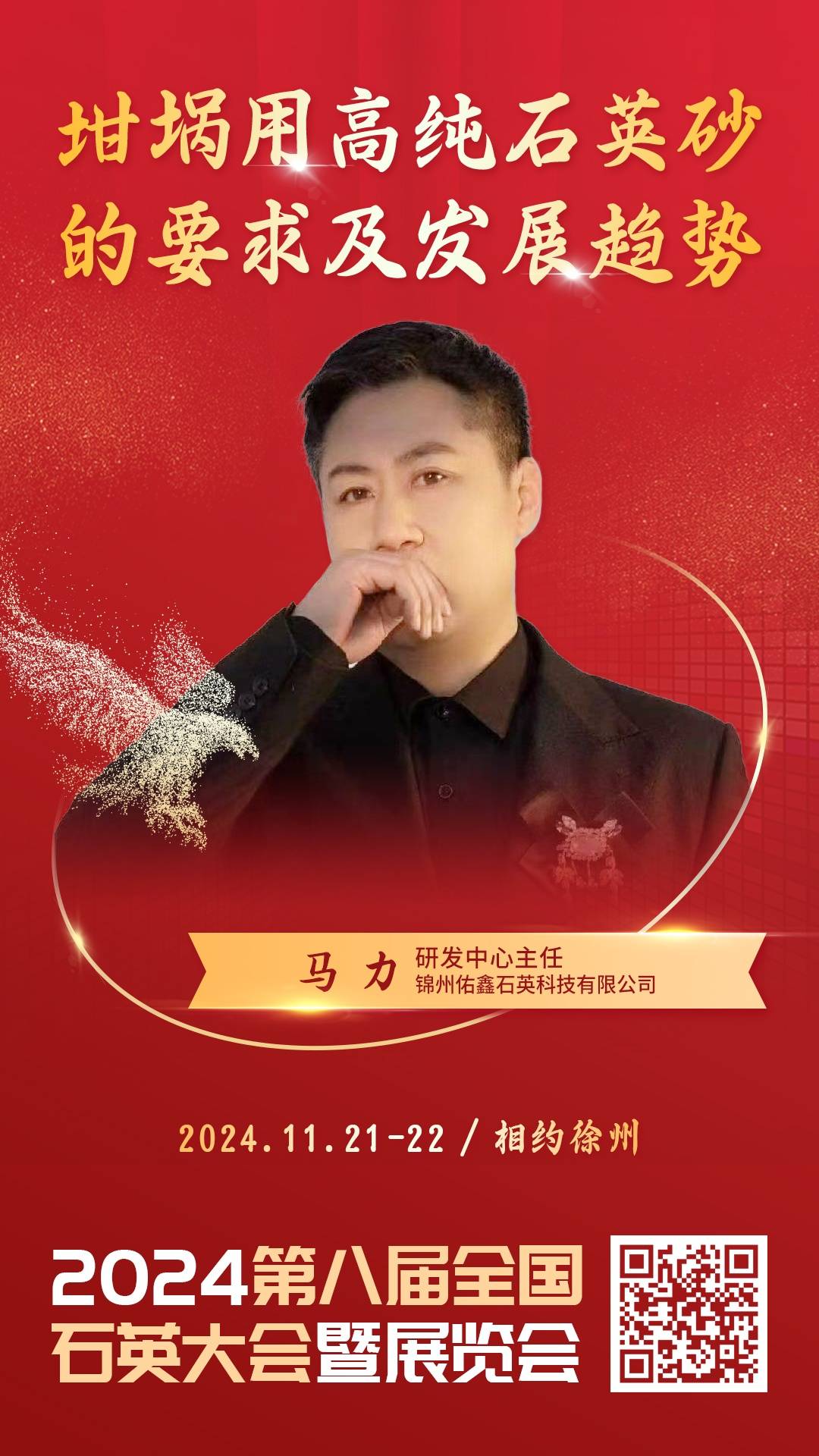 中國粉體網于將于2024年11月21-22號在江蘇省徐州市舉辦“ 2024(第八屆)全國石英大會暨展覽會 ”,錦州佑鑫石英科技有限公司邀您一同參加。