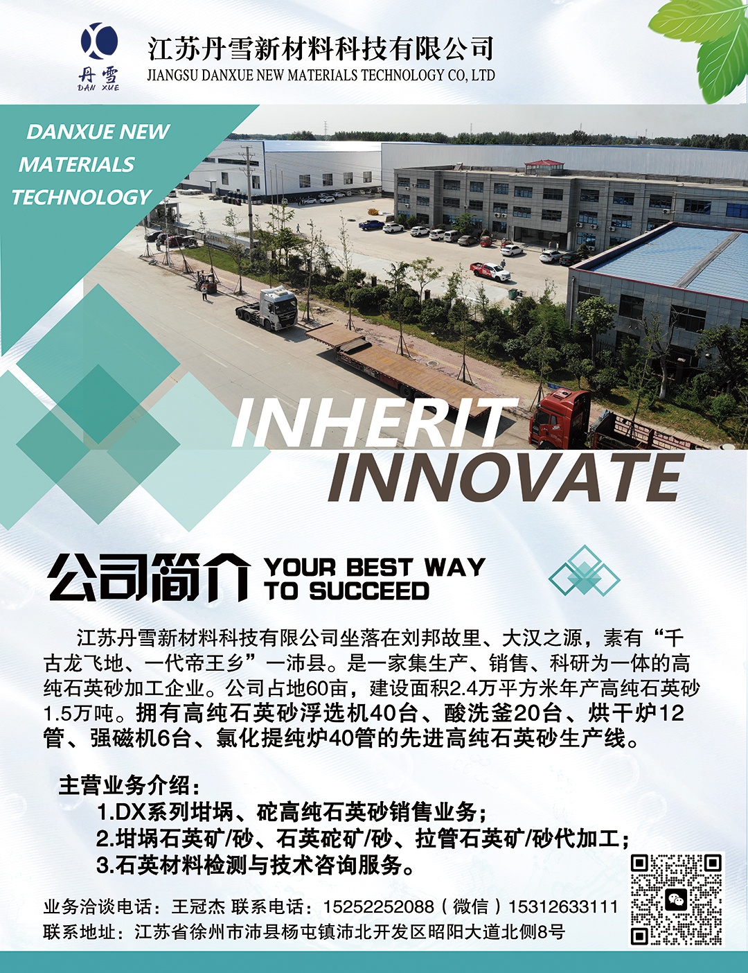 中國粉體網(wǎng)于將于2024年11月21-22號在江蘇省徐州市舉辦“ 2024(第八屆)全國石英大會暨展覽會 ”,江蘇丹雪新材料科技有限公司邀您一同參加。