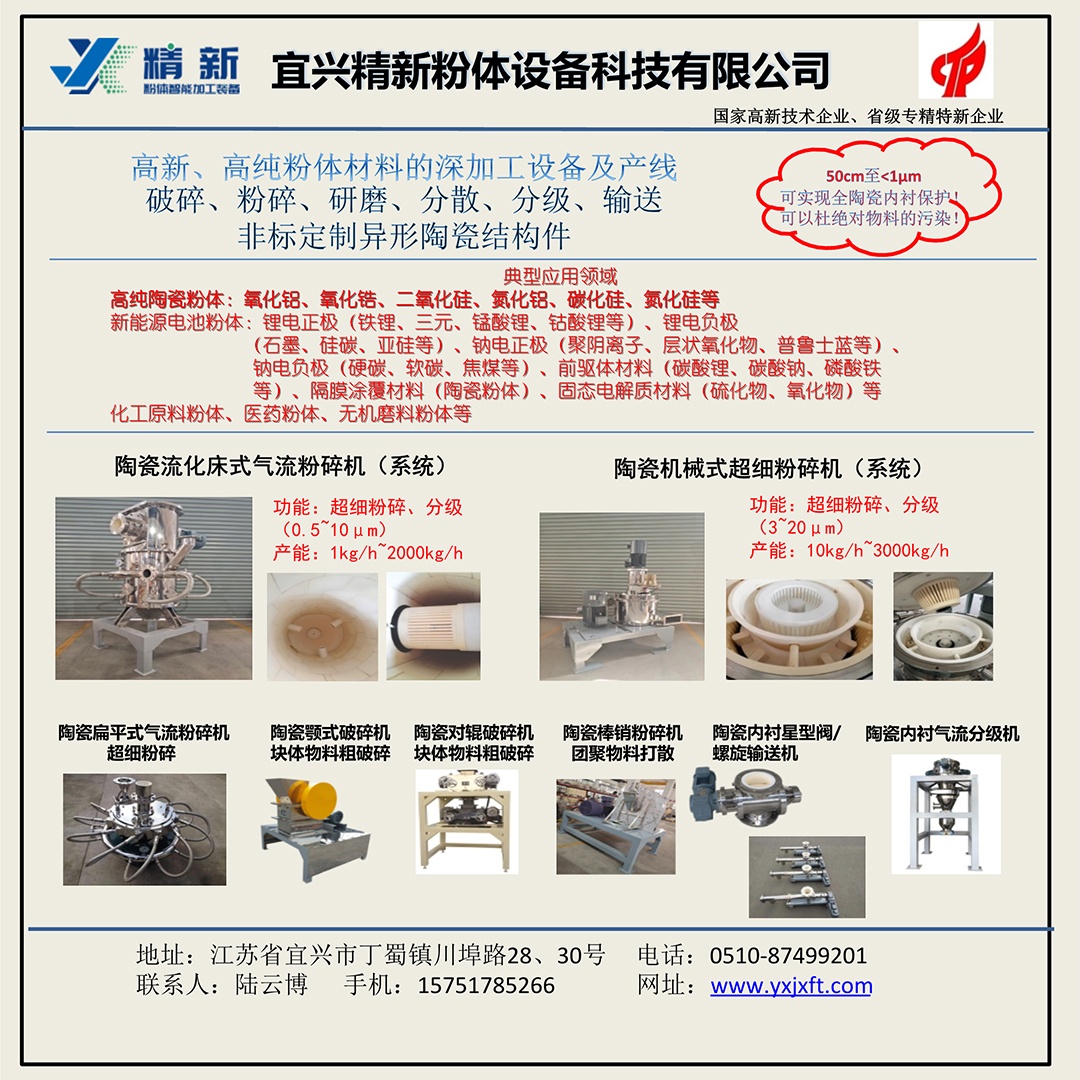 【展商推薦】宜興精新粉體設備科技有限公司邀您出席第七屆新型陶瓷技術與產業高峰論壇暨展覽會