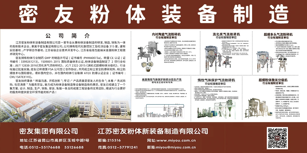 【展商推薦】江蘇密友粉體新裝備制造有限公司邀您出席第七屆新型陶瓷技術與產業高峰論壇暨展覽會