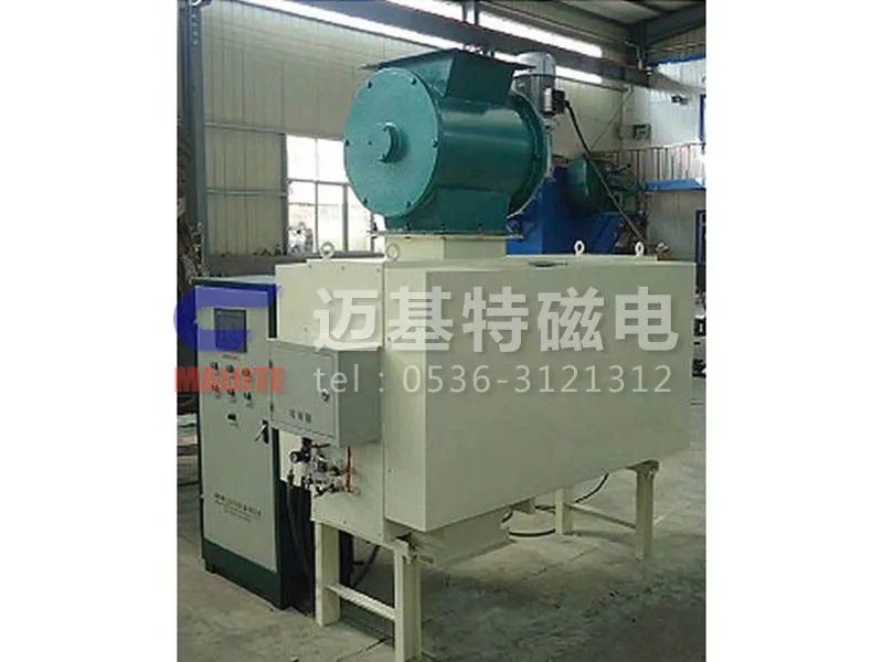MJT-DF系列電磁干粉高梯度磁選機是我公司專門針對干粉物料研究開發的一種新型除鐵設備,是礦山、耐火材料、陶瓷、玻璃、化工、石英等行業的高純除鐵設備,能除去小顆?;蚍蹱罘谴判栽现械蔫F磁雜質。其效果達到國內外同類產品領 先水平。采用油水復合冷卻,磁場強度高達30000GS,吸力強大,抓捕力強,不僅可以將原料在研磨過程中產生的機械鐵基本除凈,(除鐵效果高達98%),而且一般永磁除鐵設備難以去除的原礦中氧化鐵(Fe2O3)也可以除去一部份,除鐵效果卓越。