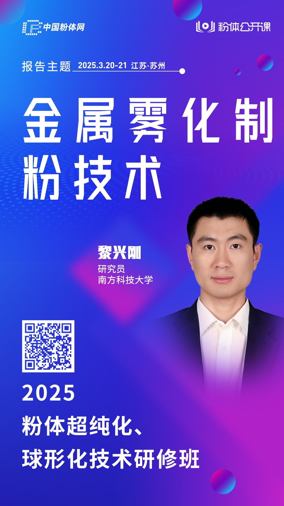 中國粉體網定于2025年3月20日至21日舉辦“2025粉體超純化、球形化技術高級研修班”,特邀南方科技大學黎興剛研究員為大家詳細講解金屬霧化制粉技術,歡迎大家一起來學習探討!