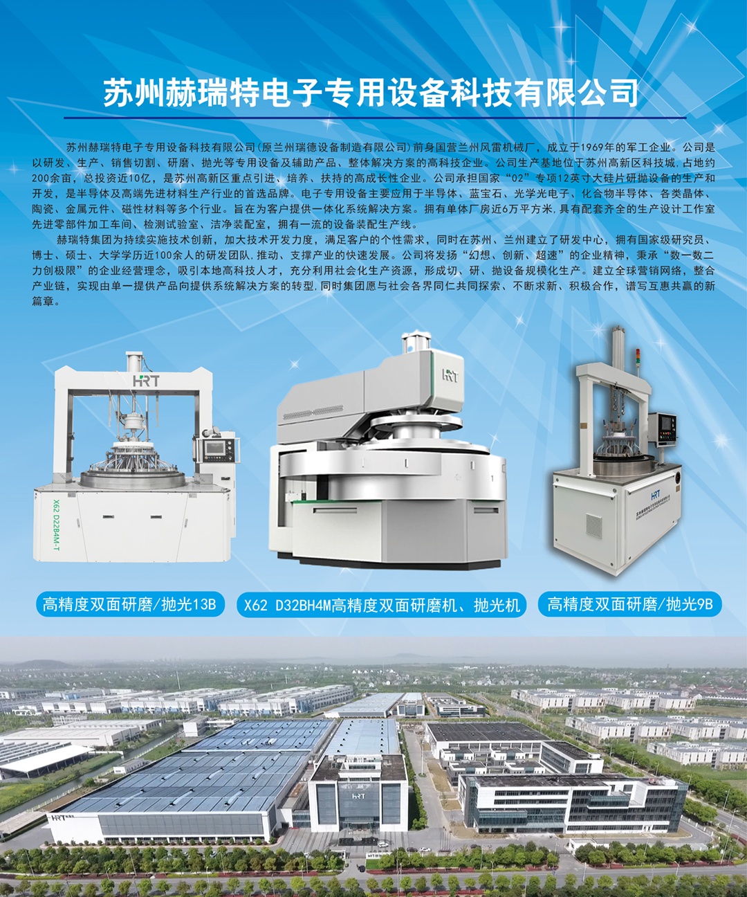 蘇州赫瑞特電子專用設(shè)備科技有限公司,承擔(dān)國家“02”專項12英寸大硅片研拋設(shè)備的生產(chǎn)和開發(fā)。赫瑞特品牌是中科院、中國電子科技集團(tuán)、中國航天等國家科研院所指定設(shè)備提供商,是半導(dǎo)體及高端先進(jìn)材料生產(chǎn)行業(yè)的首選品牌。所有產(chǎn)品均擁有完全自主知識產(chǎn)權(quán)并多次榮獲國家重點新產(chǎn)品、電子行業(yè)用戶滿意產(chǎn)品、中國半導(dǎo)體創(chuàng)新產(chǎn)品、省級名牌產(chǎn)品、省級科學(xué)技術(shù)進(jìn)步獎等各類獎項及榮譽(yù),并通過ISO9001 國家質(zhì)量體系認(rèn)證。先后開發(fā)研制專用設(shè)備150 余種,銷售數(shù)萬臺,產(chǎn)品遍及國內(nèi)29 個省市自治區(qū),品遍及國內(nèi)29 個省市自治區(qū),并遠(yuǎn)銷美國、日本、英國、德國、俄羅斯、韓國、新加坡、印度、馬來西亞、伊朗、菲律賓、越南、臺灣等國家和地區(qū)。
