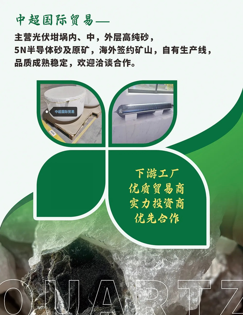 中超國際貿易江蘇有限公司主營光伏坩堝內、中,外層高純砂,5N半導體砂及原礦,海外簽約礦山,自有生產線,品質成熟穩定,歡迎洽談合作。