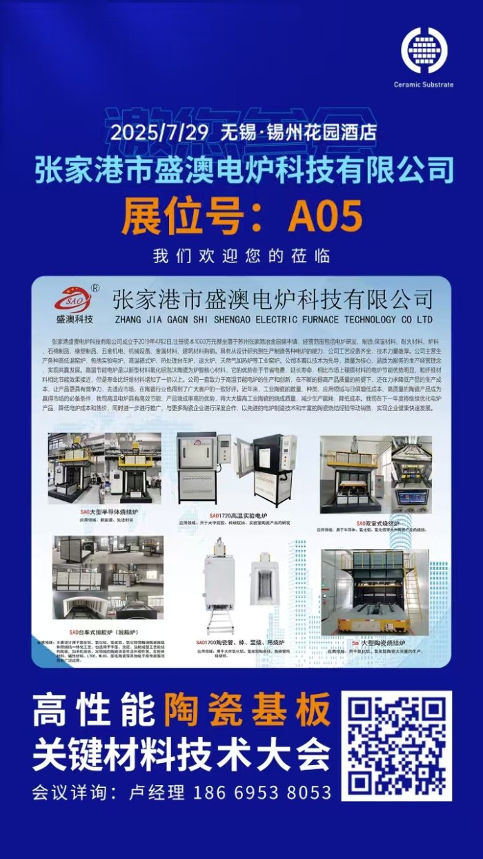 高性能陶瓷基板關(guān)鍵材料技術(shù)大會將于2025年7月29日在江蘇無錫舉辦。張家港市盛澳電爐科技有限公司作為參展單位邀請您共同出席。