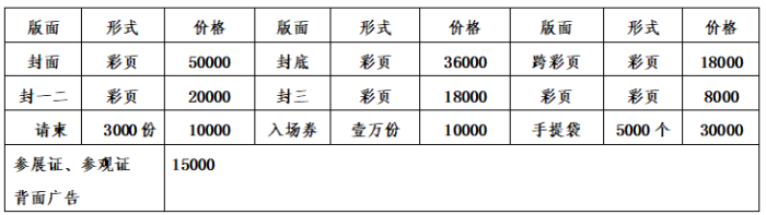 2.標(biāo)準(zhǔn)展位(3m×3m):國內(nèi)企業(yè) 12800.00 RMB/個(gè);境外企業(yè)2500.00 USD/個(gè);