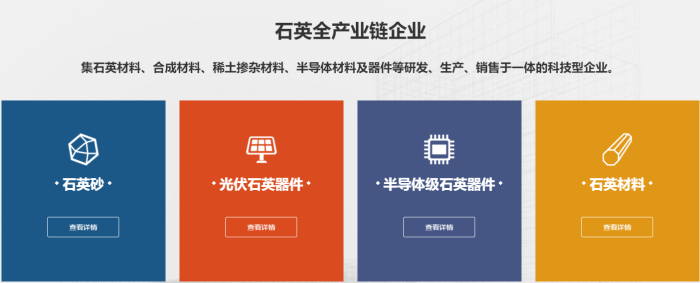 公司主要產品有:高純石英砂、石英管/棒/板/砣/錠/筒、摻雜功能石英玻璃、高純合成石英材料、光伏/半導體用石英器件等。主要應用于光源、光學、光伏、半導體、激光、航空航天等領域。弘揚石英專注產品研發,憑借一體化的全產業鏈優勢、行業領先的高質量產品,與上下游龍頭企業建立長期穩定的合作關系。