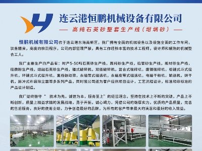 中國粉體網于將于2024年11月21-22號在江蘇省徐州市舉辦“2024(第八屆)全國石英大會暨展覽會”,連云港恒鵬機械設備有限公司邀您一同參加。展位號:A8公司介紹連云港恒鵬機械設備有限公司是一家專