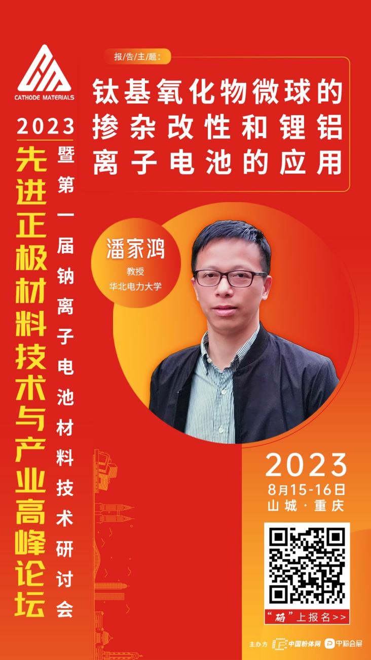 2023年8月,中國粉體網將在山城重慶舉辦“2023先進正極材料技術與產業高峰論壇暨第一屆鈉離子電池材料技術研討會”。我們有幸邀請到華北電力大學的潘家鴻教授為我們帶來題為《鈦基氧化物微球的摻雜改性和鋰鋁離子電池的應用》的報告。