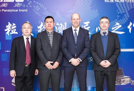 當全國顆粒表征與分檢及篩網標準技術委員會秘書長侯長革、河北工業大學梁廣川教授、馬爾文帕納科全球品牌總監Andre Balogh先生及歐美克產品技術總監傅曉偉博士為新品Topsizer Plus激光粒度分析儀上市揭幕時,發布會現場氛圍達到最高潮,百余位業內人士見證了這一激動人心時刻。