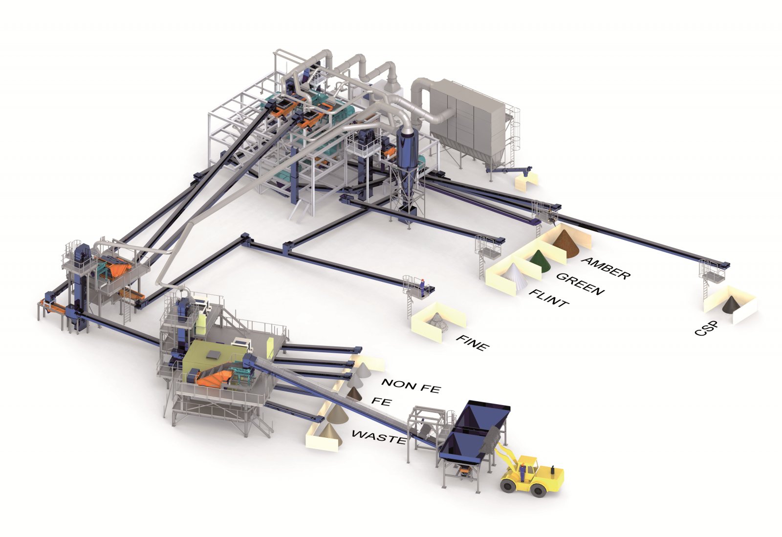 通過顏色選別玻璃,剔除石頭,瓷片等難熔物, 產能可達30噸/小時