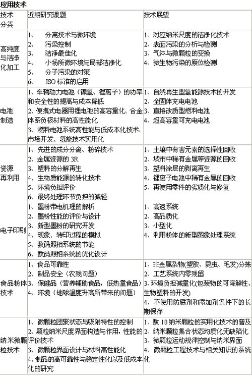參考日本粉體協會在2008東京國際粉體展覽會上散發的資料,對粉體技術的內容和工程化目標進行分析如下。