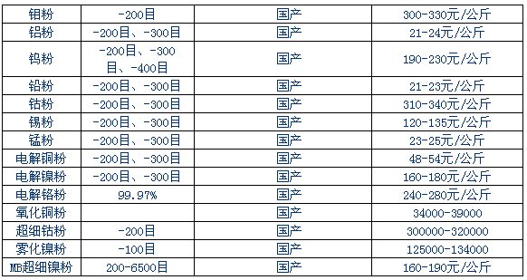 鋁粉、鉬粉、鎳粉等金屬粉體材料6月30日上海報價
