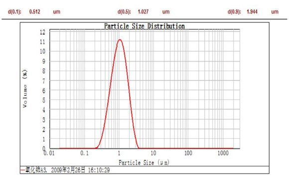 原料稀土氧化鈰通過粉碎分級(jí)獲得粒徑均勻分布的產(chǎn)品 [檢測(cè)儀器為馬爾文激光粒度分析儀MS2000](下圖)