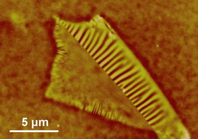 最近,國家納米科學(xué)中心的方英課題組,發(fā)展了一種非常有趣的可以用于石墨烯結(jié)構(gòu)工程的方案。他們利用AFM深入研究了軟基底(PMMA)上石墨烯的納米結(jié)構(gòu)的構(gòu)造。當(dāng)體系從PMMA的玻璃化溫度以上開始冷卻時(shí),石墨烯的邊緣出現(xiàn)納米尺度的周期性褶皺。他們認(rèn)為石墨烯和PMMA之間較大的熱膨脹系數(shù)差別是產(chǎn)生周期性褶皺的原因。PMMA在冷卻過程中很快收縮,對(duì)石墨烯產(chǎn)生應(yīng)力。為了克服應(yīng)力,石墨烯在邊緣扭曲。他們的這種方法開辟了一條在石墨烯中引入納米結(jié)構(gòu)的新途徑,使進(jìn)一步研究這些周期性褶皺的對(duì)石墨烯電學(xué)性質(zhì)的影響成為可能。